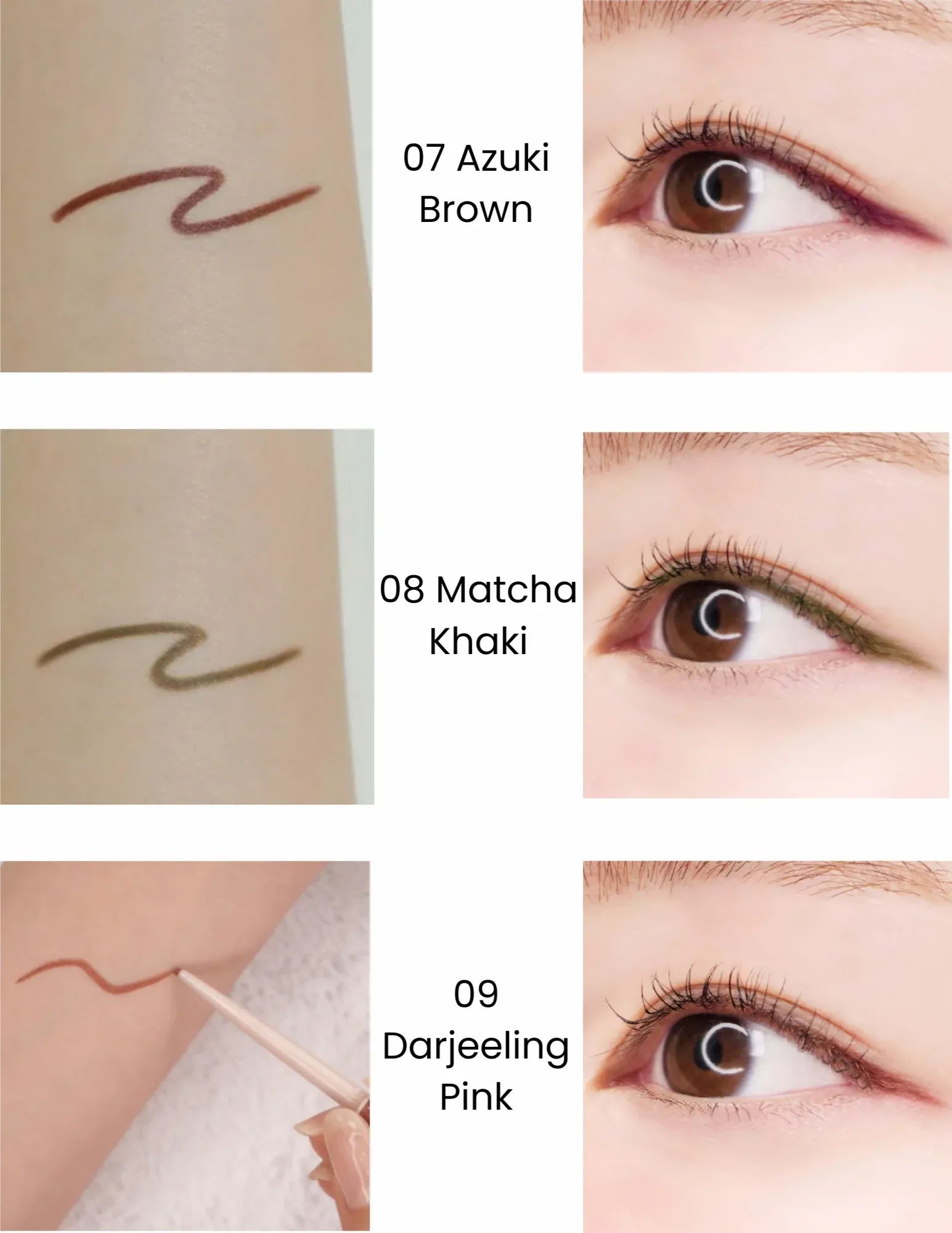 Delineador em gel ultra fino (1,5 mm) de alta pigmentação e longa duração. Fórmula cremosa para aplicação suave, ideal para traços precisos e look natural. Produto oficial Canmake.