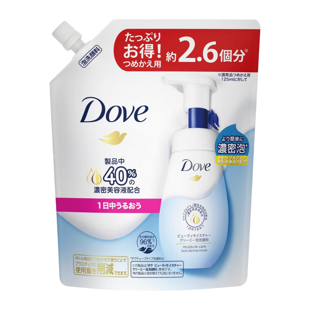 Espuma de limpeza facial cremosa em refil de 320 ml, da linha Dove Beauty Moisture. Desenvolvida para limpar o rosto com sensação de hidratação, conforme a descrição do fabricante.