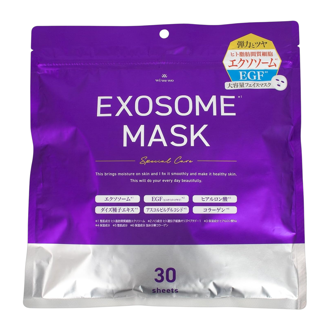 Água, Glicerina, Dipropilenoglicol, Exossomos de células estromais adiposas humanas, Oligopeptídeo-1 recombinante humano, Ascorbil Glicosídeo, produto de decomposição de ameixa, Hialuronato de Sódio, extrato de semente de soja, sacarose, Colágeno Hidrolisado, Glicosil Trealose, Amido Hidrogenado Hidrolisado, Glicirrizinato de Dipotássio, Alantoína, Colesterol, etilhexilglicerina, Butilenoglicol, Tocoferol (Vitamina E), Goma Xantana, Lecitina Hidrogenada, Cocoil Sarcosina Sódica, PEG-60 Óleo de Rícino Hidrogenado, Citrato de Sódio, Ácido Cítrico, Hidróxido de Potássio, Fenoxietanol, Metilparabeno, Etanol, Fragrância