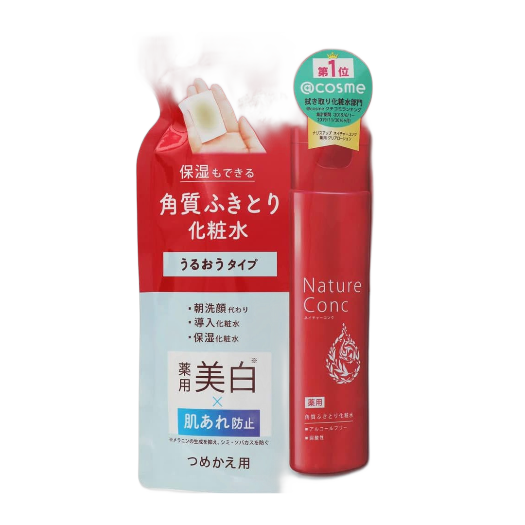 Loção clareadora medicinal da Nature Conc (ネイチャーコンク) - Naris Up. Embalagem refil 180ml.