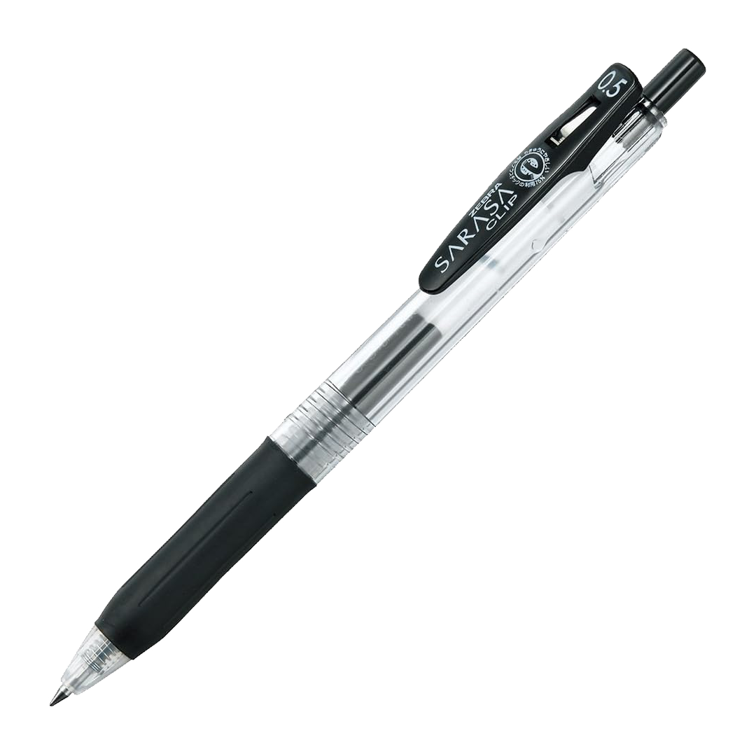 Caneta gel Sarasa Clip 0.5mm na cor preta. Pacote com 10 unidades. Escrita suave, ideal para uso diário.